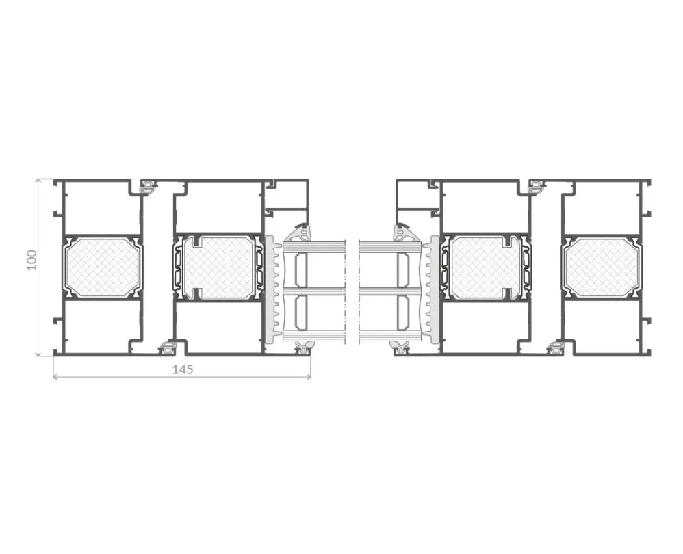 Le système de portes AS 100 PIVOT avec axe de rotation décalé est destiné à la construction de portes extérieures à un ou deux vantaux. Sa caractéristique principale est l’axe de rotation décalé, qui leur confère un aspect original, moderne et particulièrement spectaculaire. La construction du système utilise des joints écologiques en TPE ainsi que des intercalaires anti-bimétalliques divisés, qui protègent les portes contre les déformations provoquées par les différences de température. L’étanchéité des portes est encore améliorée par un joint automatique escamotable qui s’abaisse lors de la fermeture du vantail. Le seuil automatique protège contre la pénétration du froid, de la poussière, de l’eau et du bruit. Le design exceptionnel a été obtenu grâce à la dissimulation systémique de tous les éléments de fixation (vis et fixations).