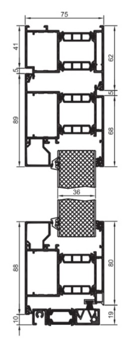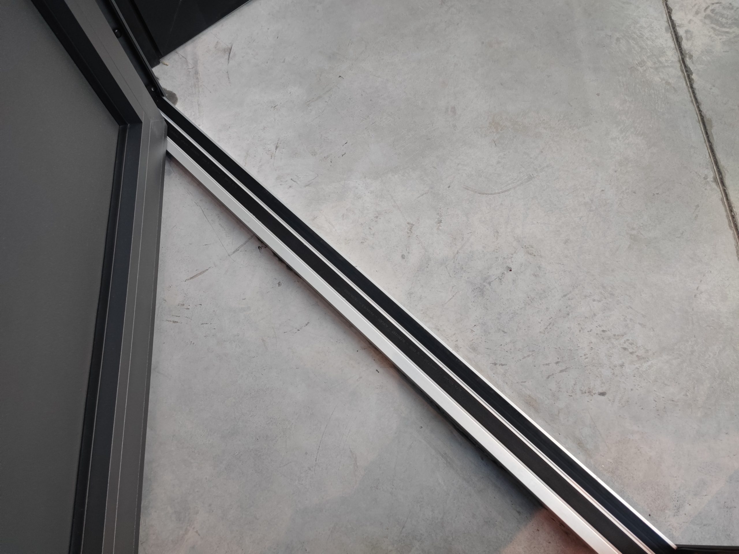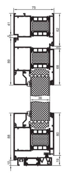 Largeur de construction du dormant et de l’ouvrant: 75 mm – portes ouvrant vers l’intérieur. La série PLUS est équipée de cales d’isolation supplémentaires dans le dormant et l’ouvrant. Seuil bas de 20 mm avec barrette thermique, en finition anodisée. |