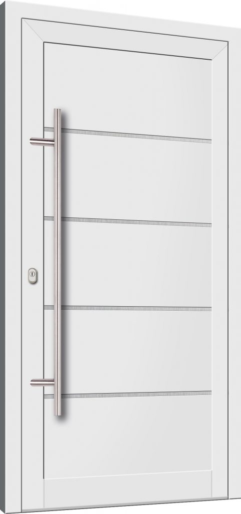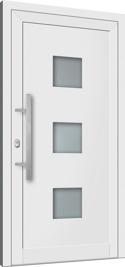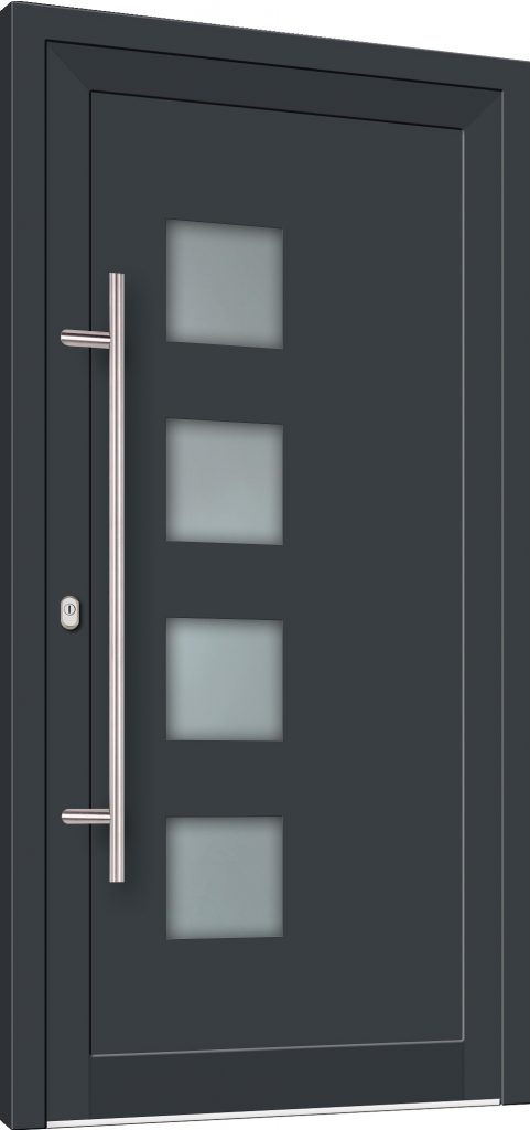 Les portes EcoThermo 75 sont une solution idéale pour ceux qui recherchent des portes aluminium à panneau, offrant de bonnes performances thermiques et un design moderne à un prix particulièrement avantageux. Elles sont équipées de série d’une poignée et d’une rosace en acier inoxydable sur plaque séparée, d’un cylindre à roue libre ainsi que d’une ferrure 3 points GU MR2 commandée par clé.