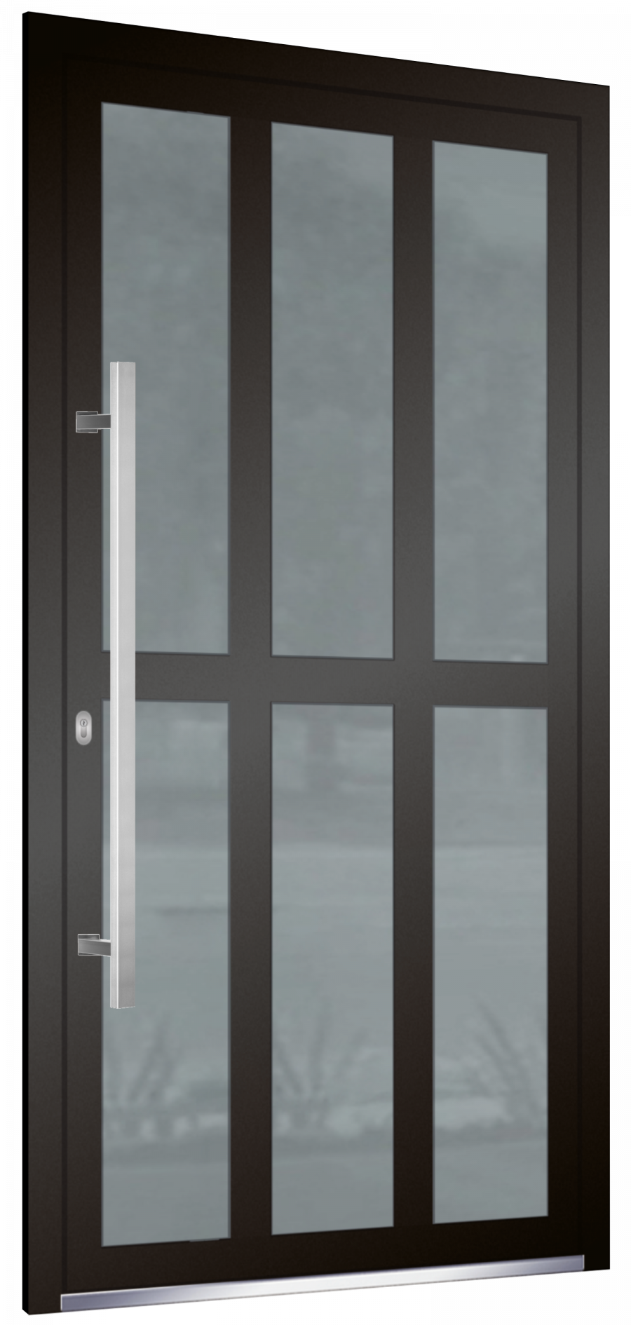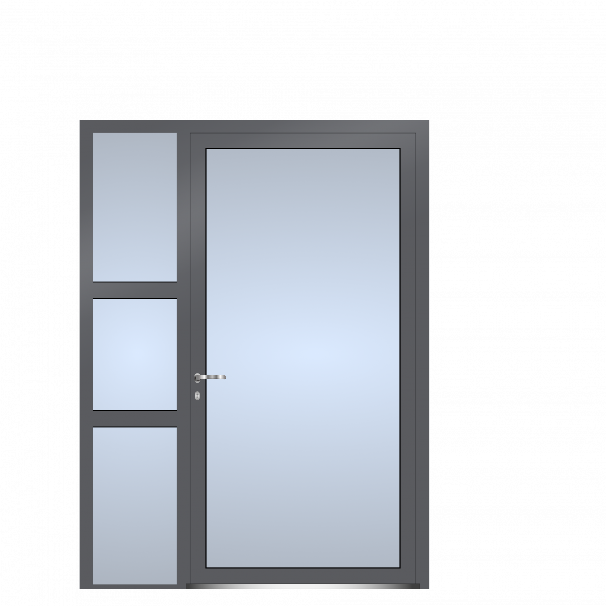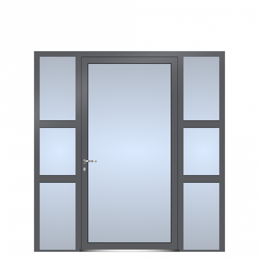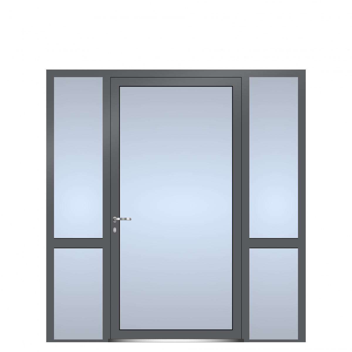 La porte GlassThermo 75 est équipée en standard d’une serrure à bande 3 points GU MR2 commandée par une clé (3 clés en standard) avec un insert BKS équipé d’une fonction débrayage. De l’intérieur, il y a une poignée et une rosace sur deux plaques en acier inoxydable. La porte est montée sur trois charnières à double vantail avec fonction de régulation sur 3 niveaux, vernies pour correspondre à la couleur du cadre. Il existe deux types de poignées de longueurs différentes et 6 poignées de couleurs différentes.