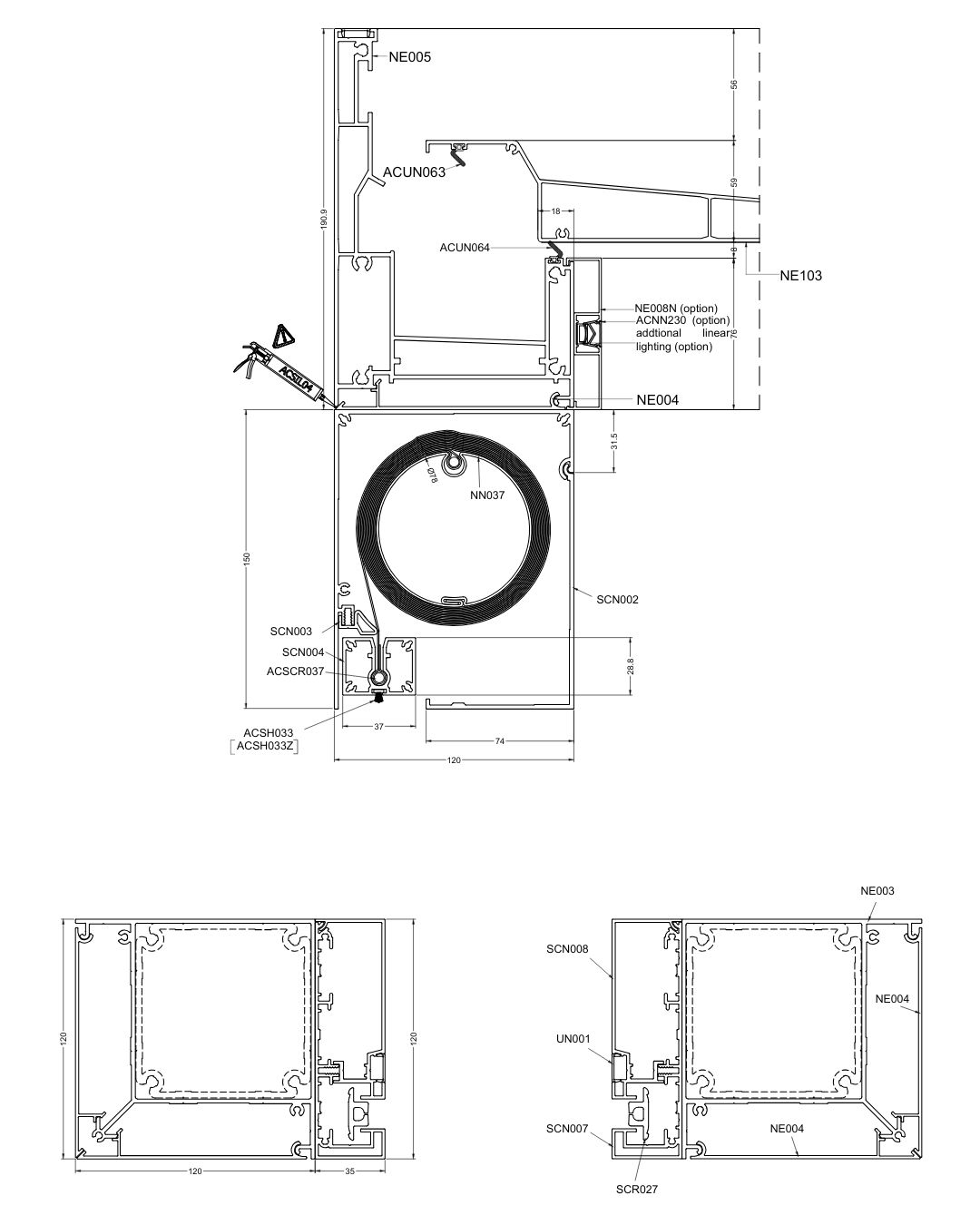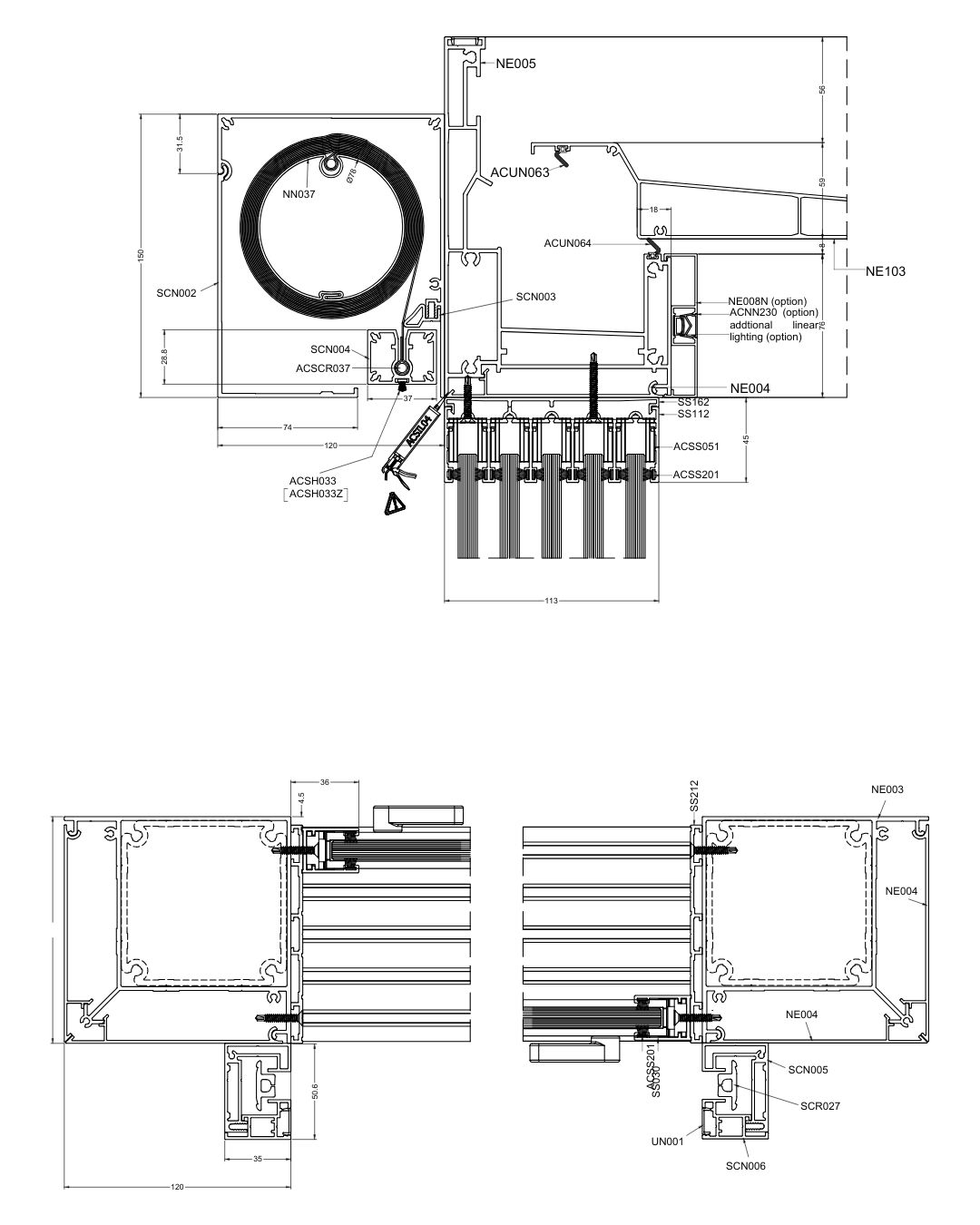 Cela permet de couvrir même de très larges surfaces vitrées sans diviser la structure en modules plus petits.