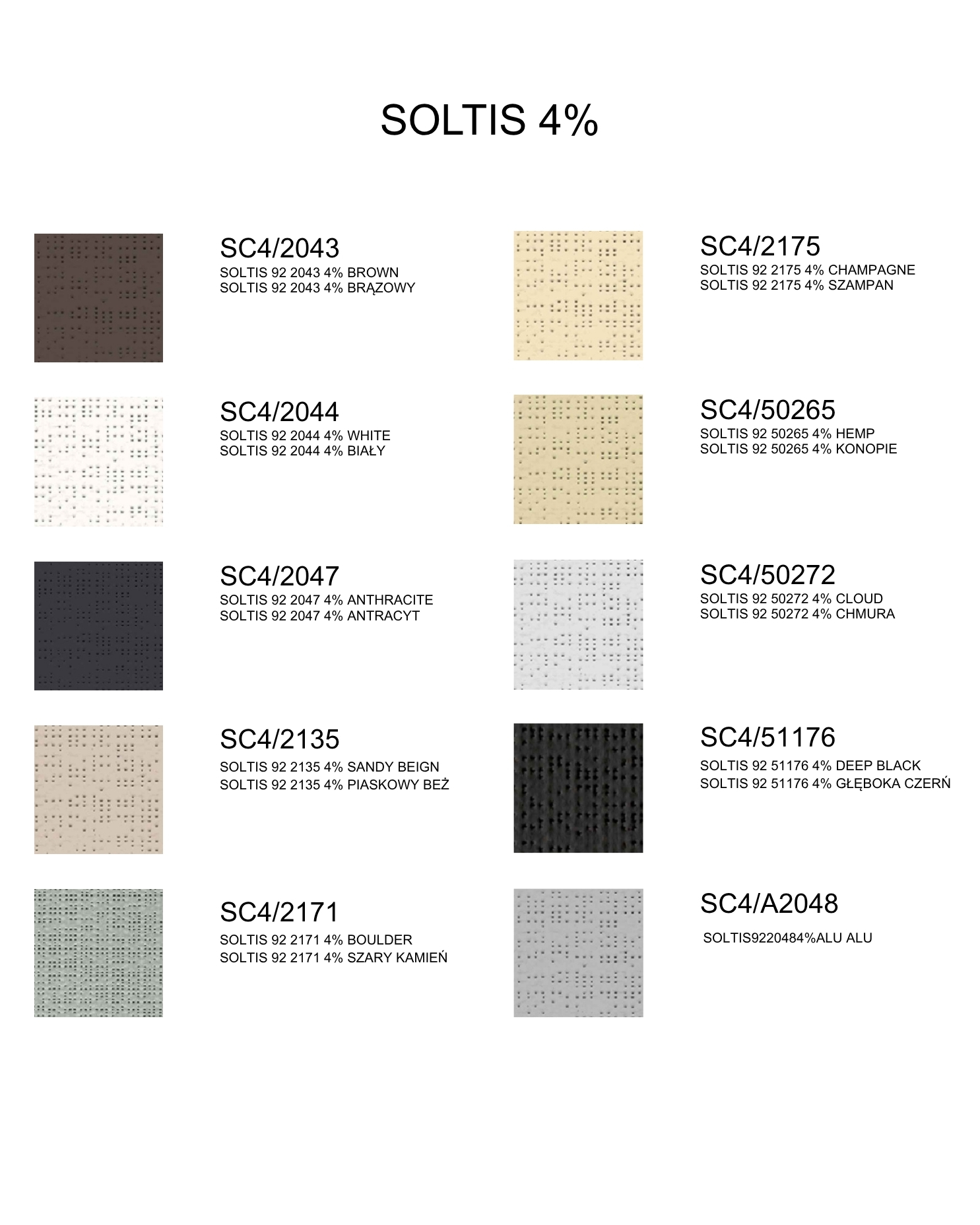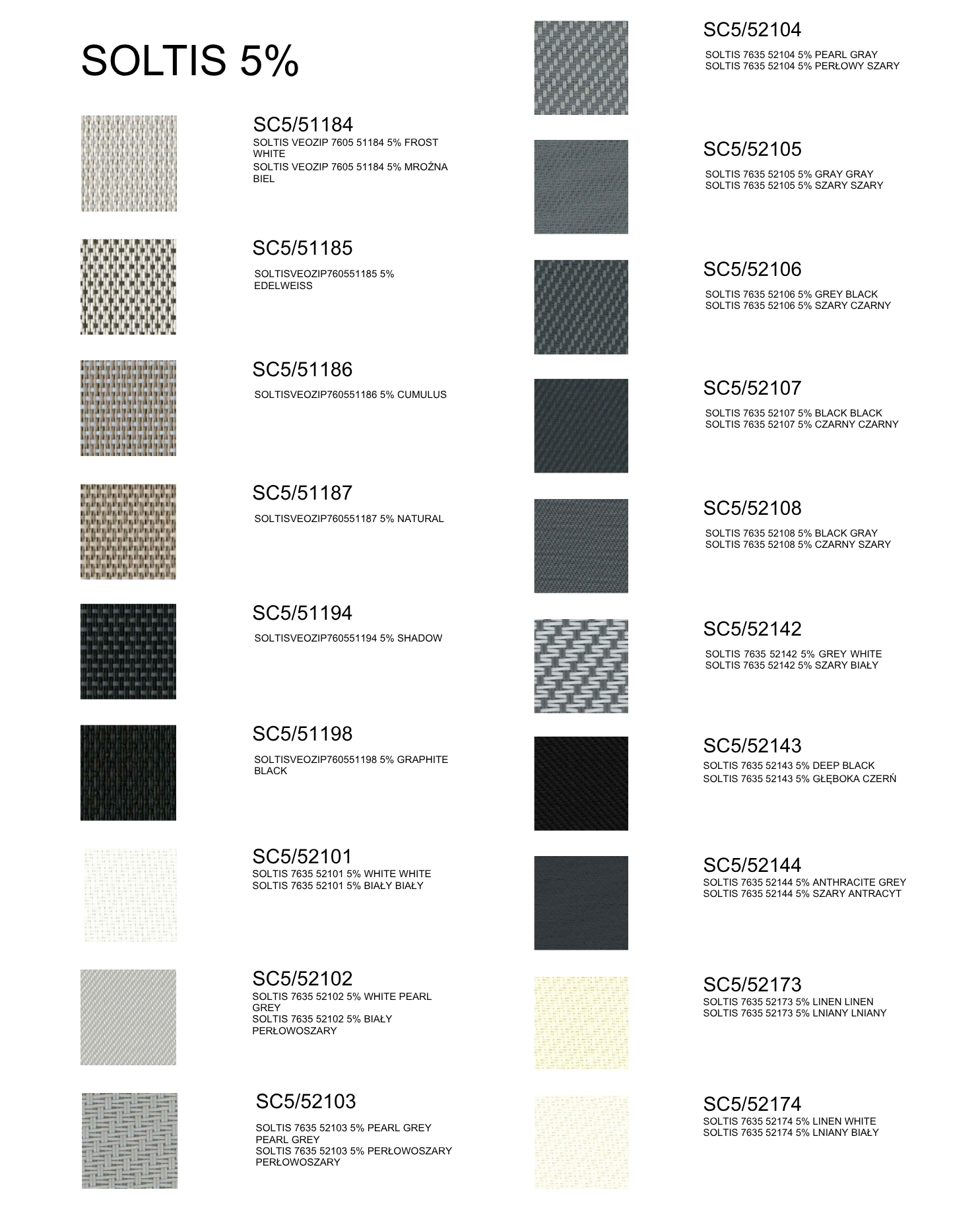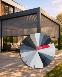 Toiles – Fonctionnalité et design. Le système propose un large choix de toiles screen. Facteur d’ouverture : 0 %, 1 %, 4 %, 5 %. Les toiles permettent de contrôler la quantité de lumière, d’assurer l’intimité et de protéger contre la surchauffe des intérieurs. Large palette de couleurs : blancs, gris, anthracites, beiges, teintes naturelles et noir profond.