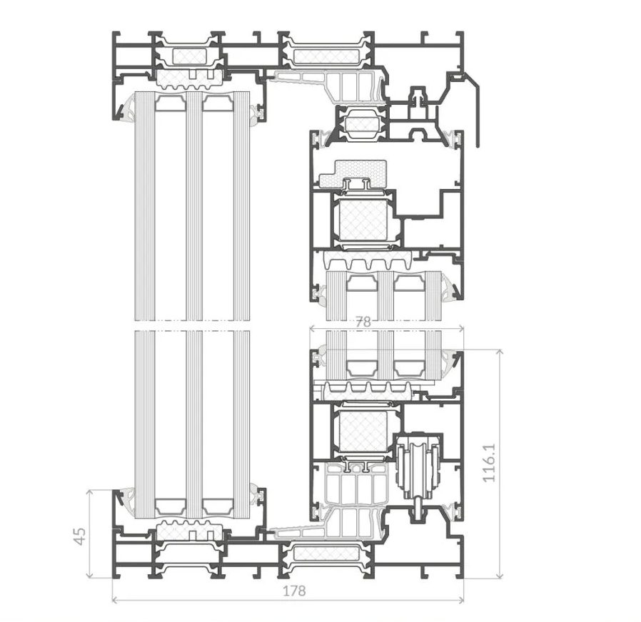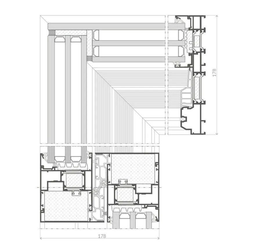 Le système AS 178HS PRO SLIM permet une intégration complète du dormant dans l’isolant, soulignant les qualités décoratives des façades et conférant un caractère unique au bâtiment. Il offre la flexibilité de concevoir des structures selon tous les schémas de construction disponibles sur le marché (solutions avec coulisse bipanneaux et tripanneaux, possibilité d’intégrer des vitrages fixes sur des vantaux passifs, etc.).