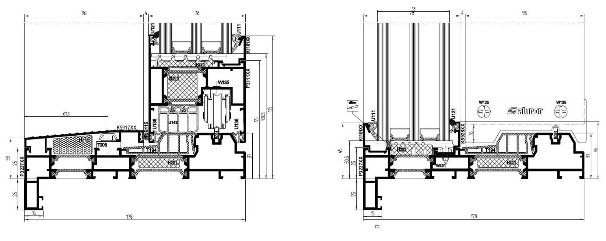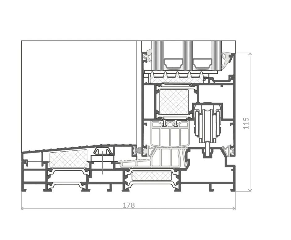 L’Aluron AS 178HS PRO SLIM est un système entièrement vitré à levage et coulissant qui allie innovations techniques et design moderne. Ce système permet de créer de grandes baies vitrées de terrasse mobiles, dotées d’un seuil bas et bien isolé. Ses mécanismes de construction assurent un déplacement sûr et confortable de panneaux lourds, manuellement ou automatiquement. Le système utilise des ferrures de fournisseurs renommés, garantissant un déplacement aisé même pour des vantaux très lourds. De série, la technologie ANTI-BI-METAL assure durabilité et bon fonctionnement malgré de grandes variations de température intérieure et extérieure, tandis que les loquets plats de la gâche de porte garantissent esthétique et sécurité pour l’utilisateur.