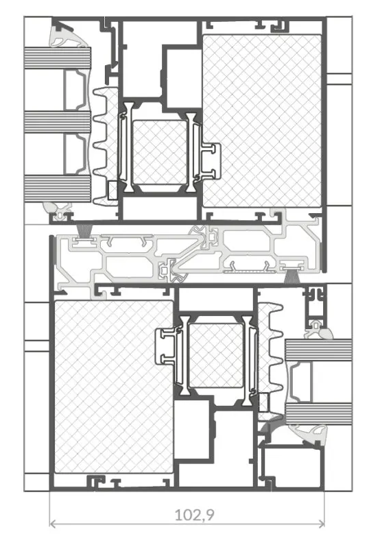 Le système dispose de connecteurs en T permettant de relier un montant de façade au HST sans devoir doubler le dormant.