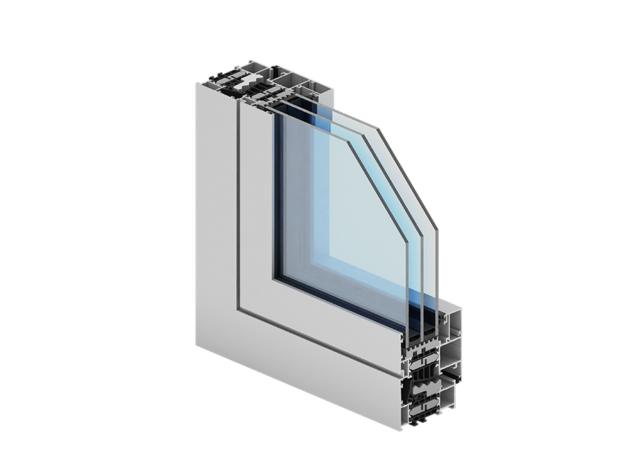 En standard: pack triple vitrage (4/18/4/18/4 et Ug=0,5 W/m2K) avec un intercalaire chaud Swisspacer | Possibilité de la mise en place des packs de vitrage de 14 à 61 mm d’épaisseur | Au choix : verre sécurité, trempé, antieffraction, antisolaire, verre à isolation phonique et à ornements |