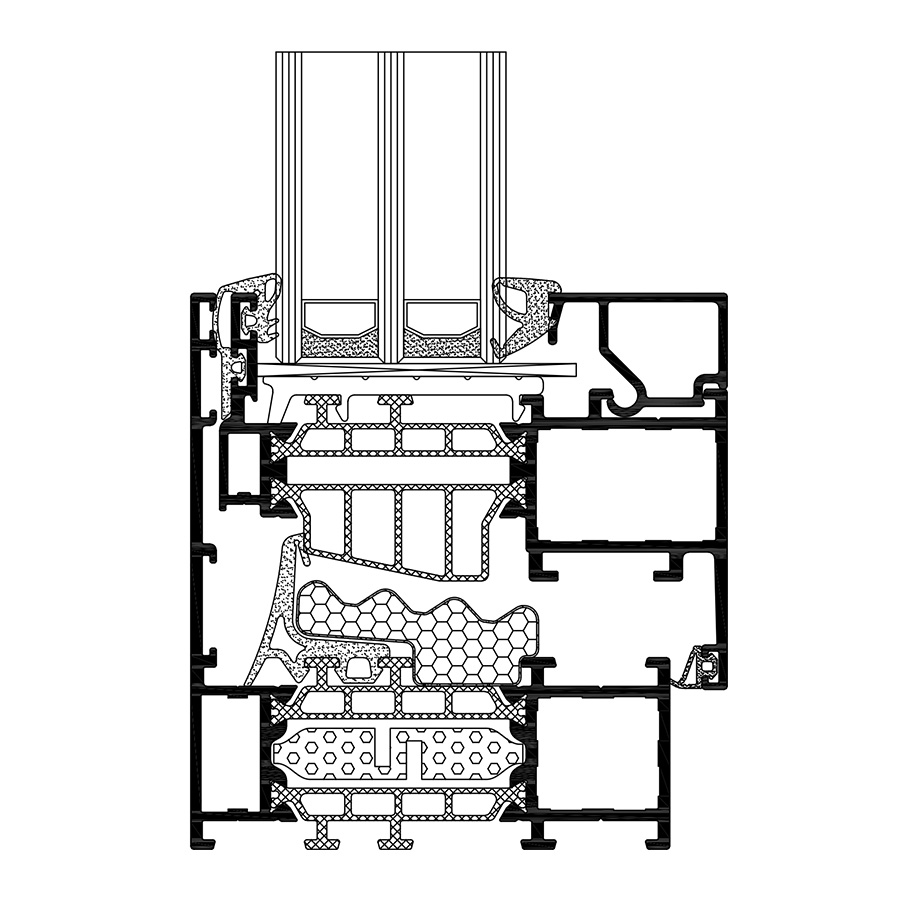 L’utilisation d’un intercalaire thermique supplémentaire placé avec le joint central standard a permis d’obtenir une très grande étanchéité des fenêtres, tout en conservant un look moderne. C’est le mariage de la plus grande ergonomie d’utilisation avec l’esthétique moderne des profilés, qui permet de concevoir une structure de fenêtre avec un caractère individuel et un design innovant.